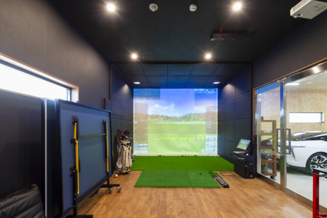 ゴルフシミュレーションを備え、仲間を招けるキッチンも設置。